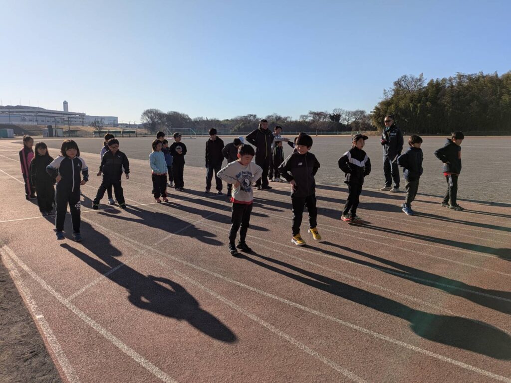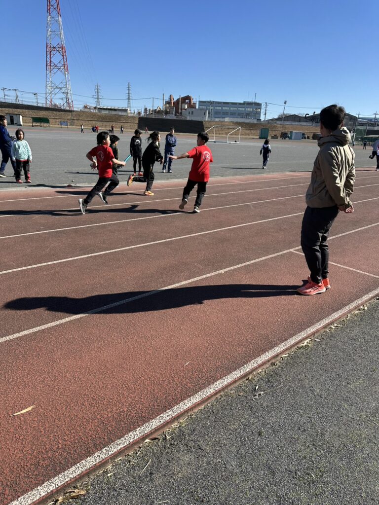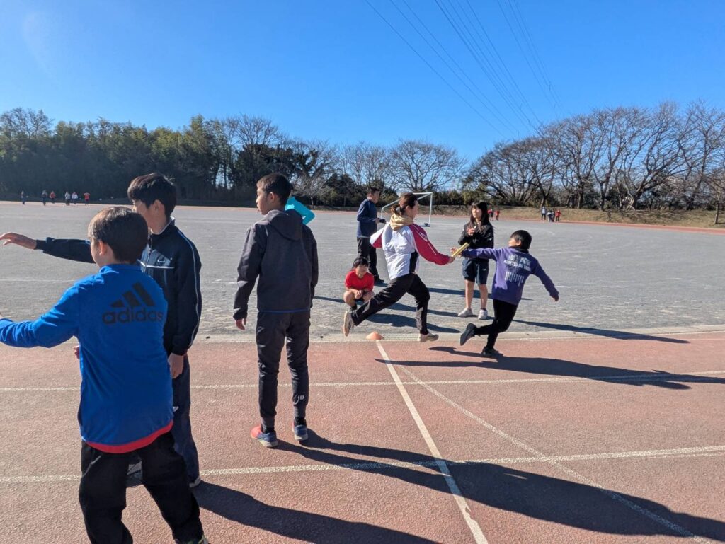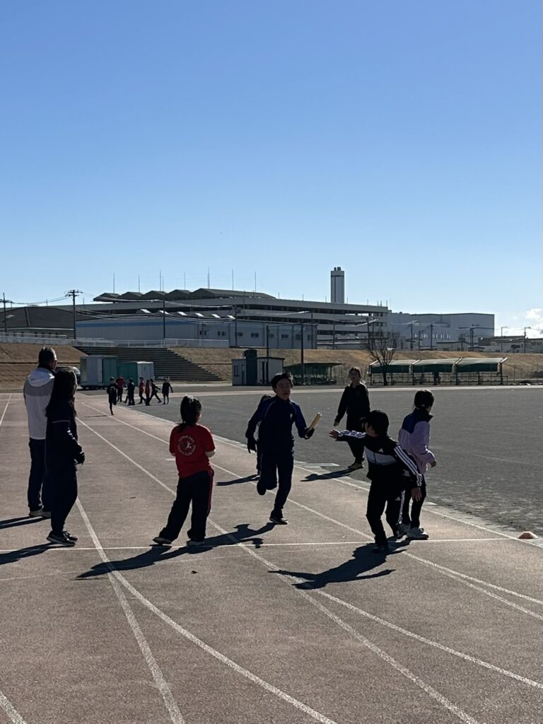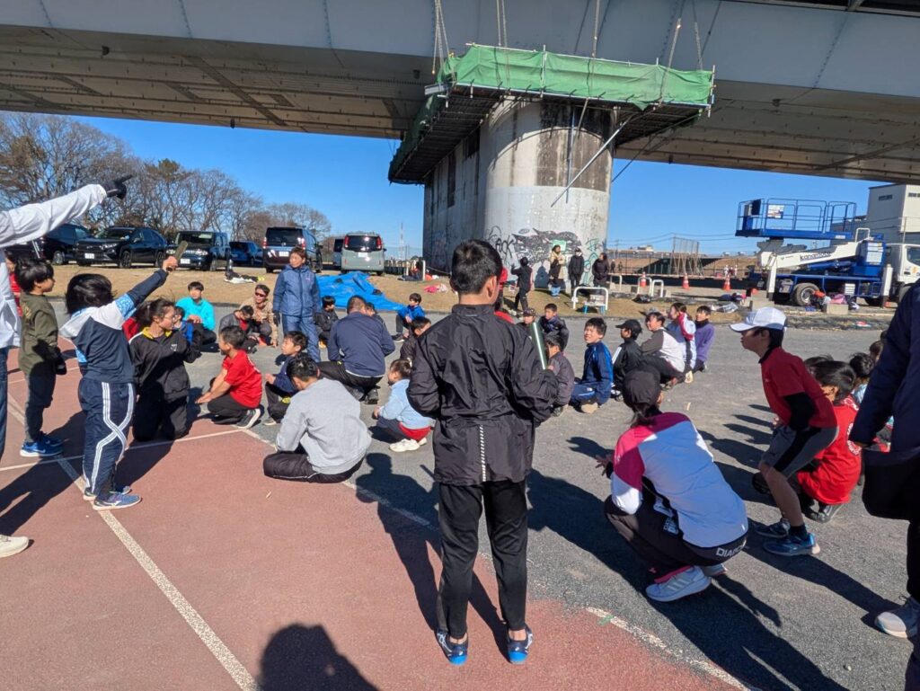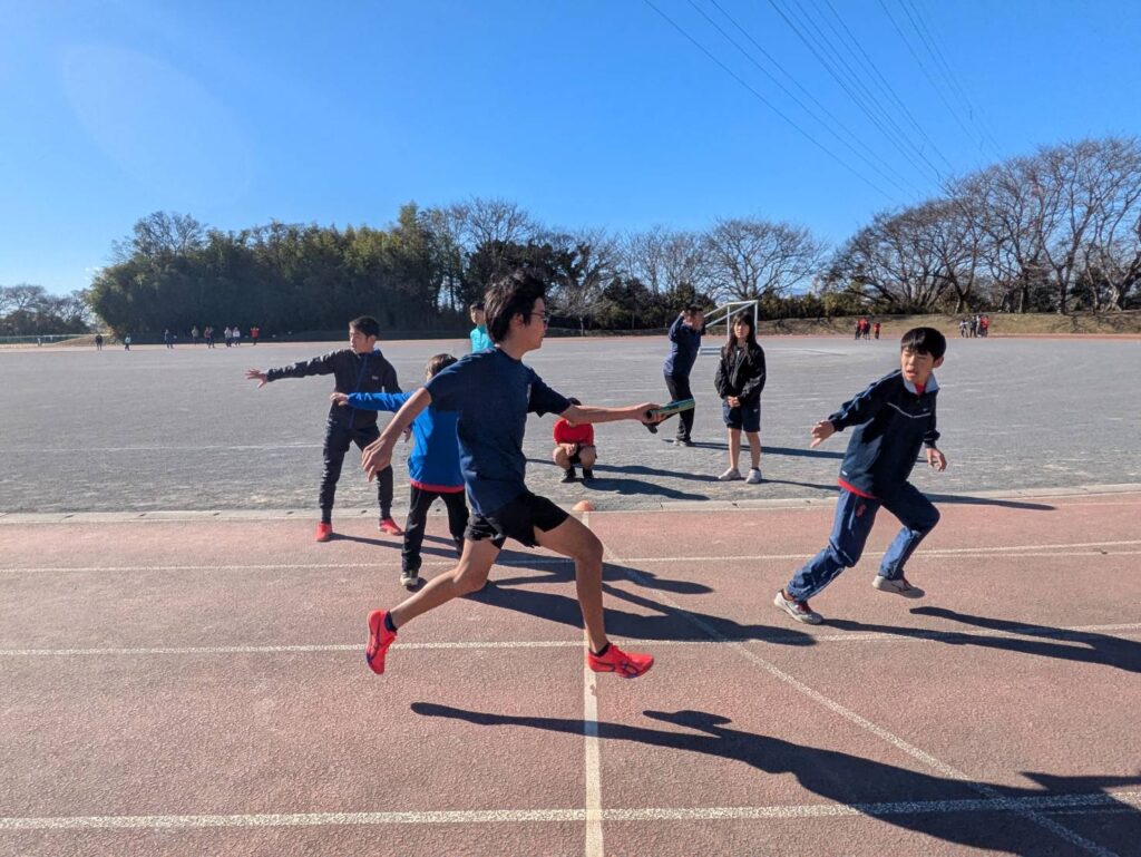 途中からは風が強まり、砂埃が舞う時間帯もありましたが、参加人数も多く、リレーは11人×4チームと賑やかな練習会となりました