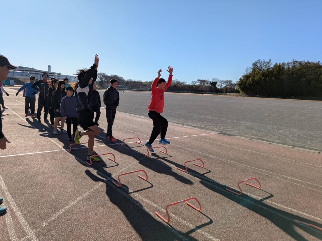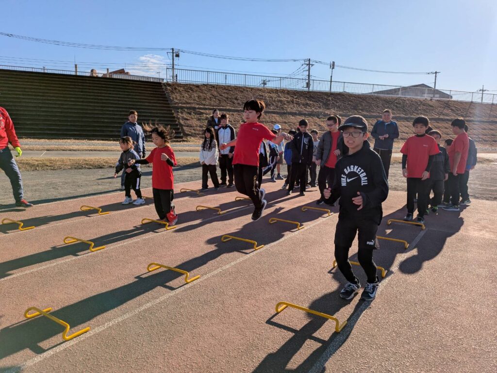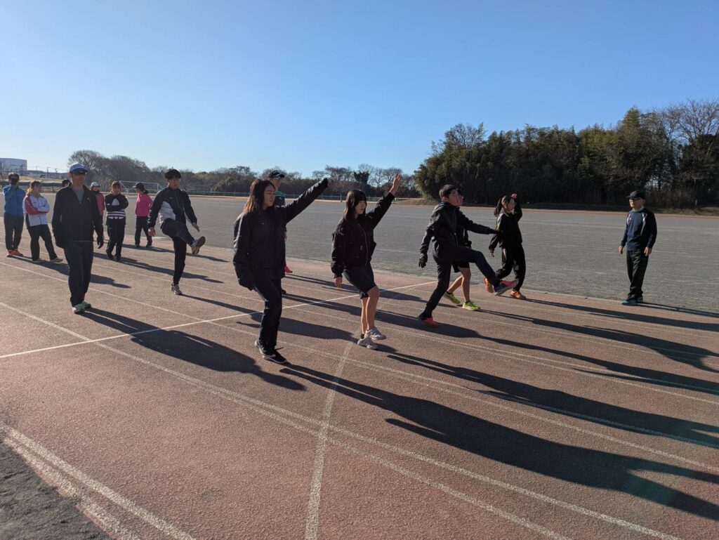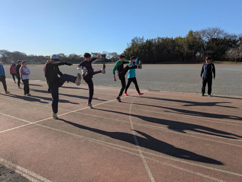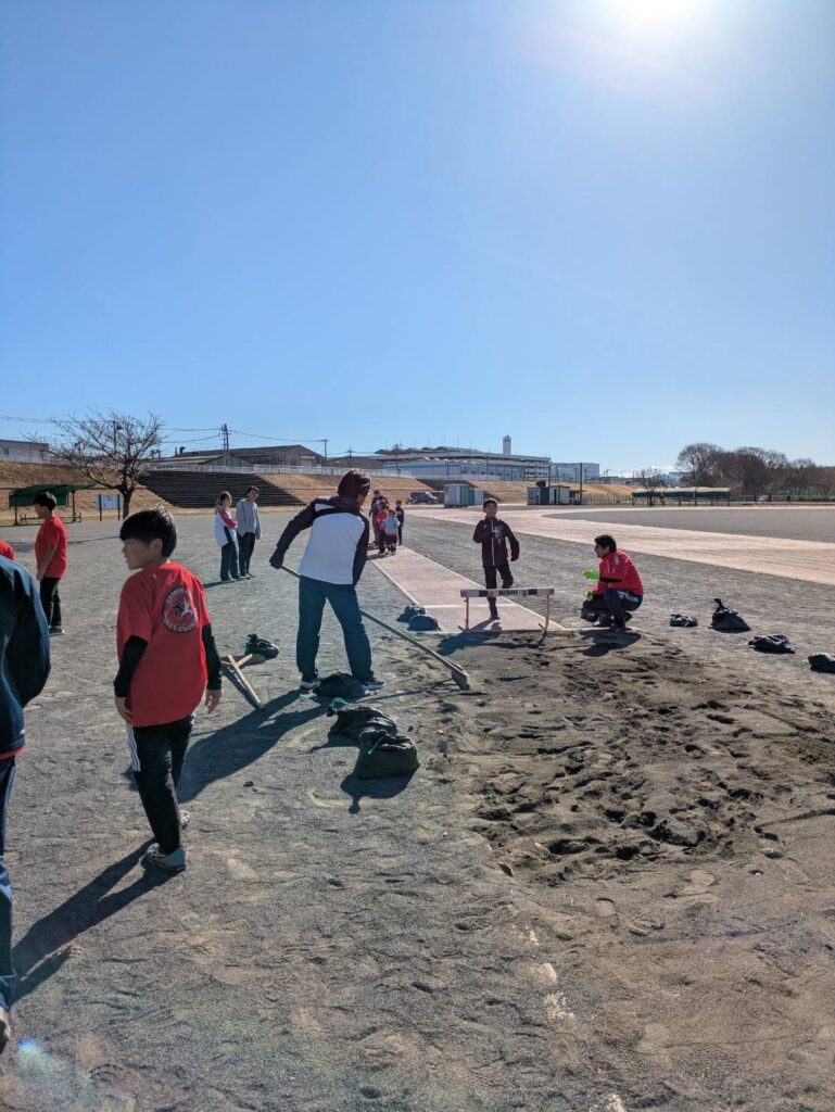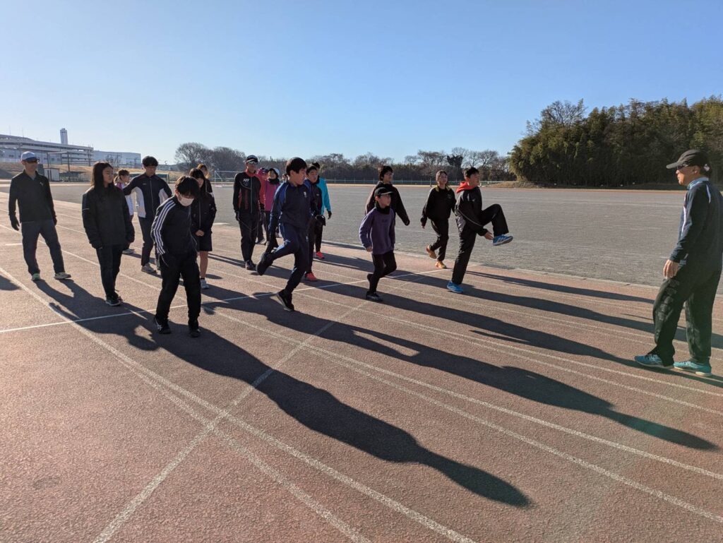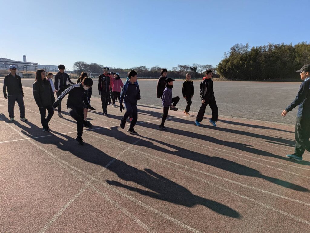 途中からは風が強まり、砂埃が舞う時間帯もありましたが、参加人数も多く、リレーは11人×4チームと賑やかな練習会となりました
