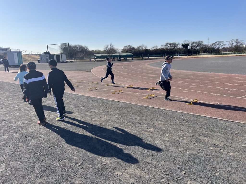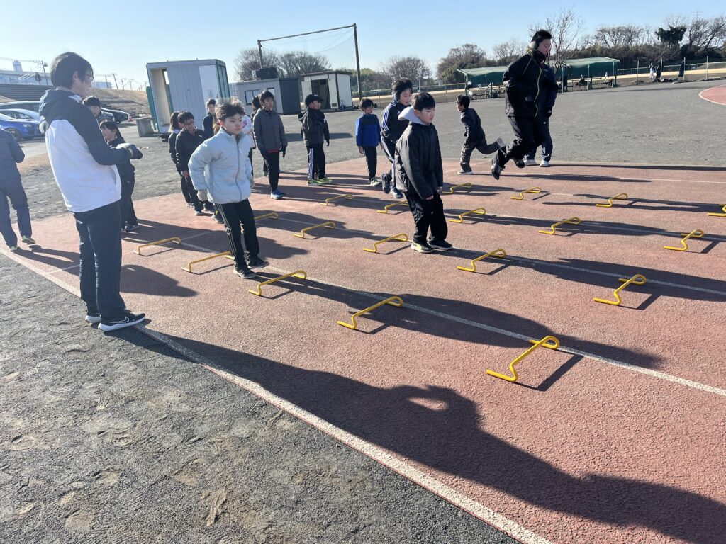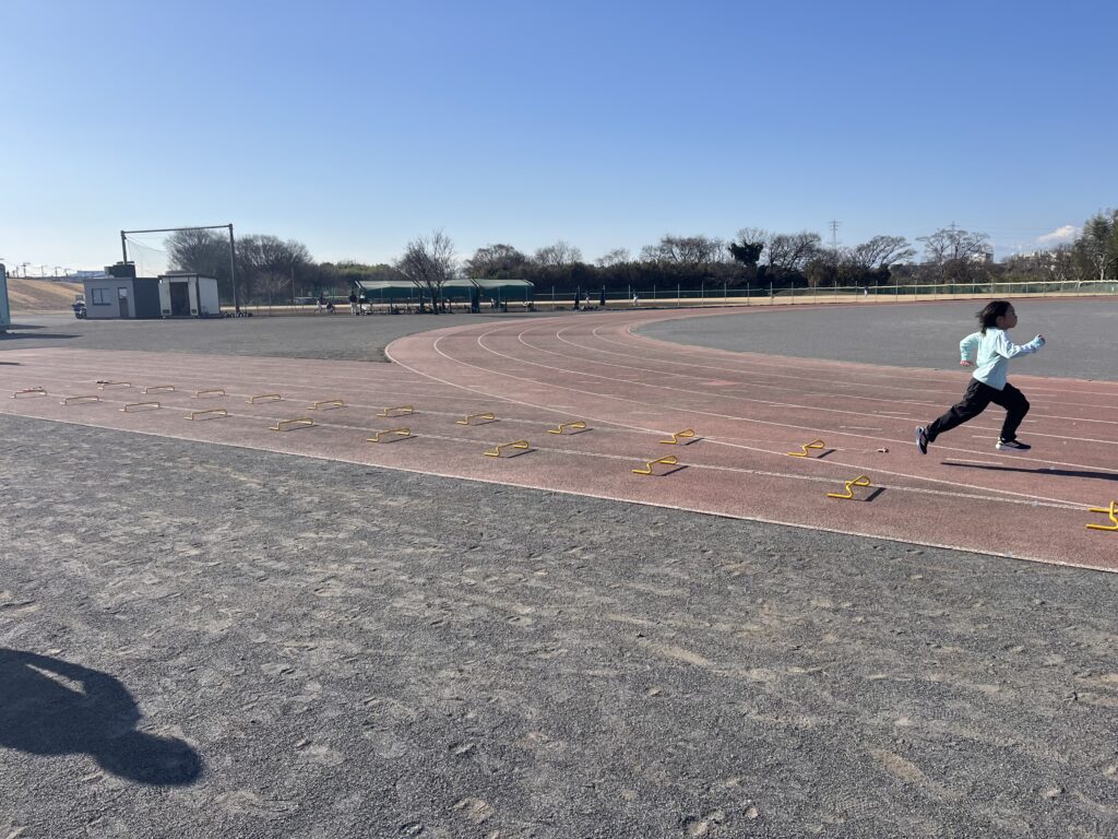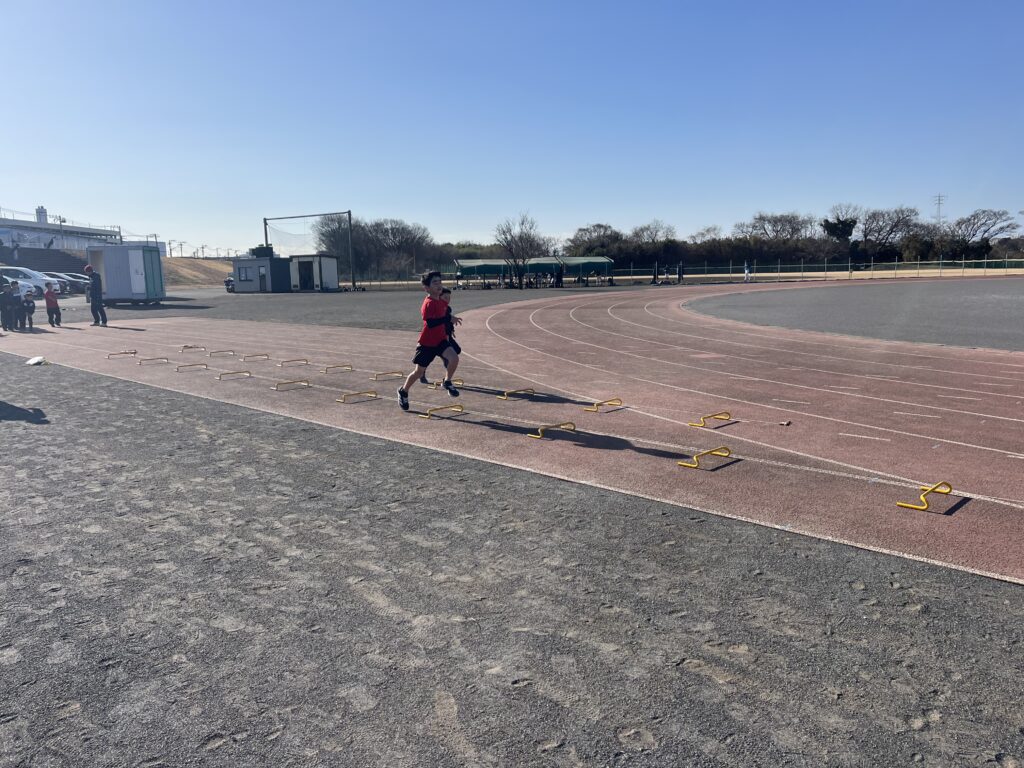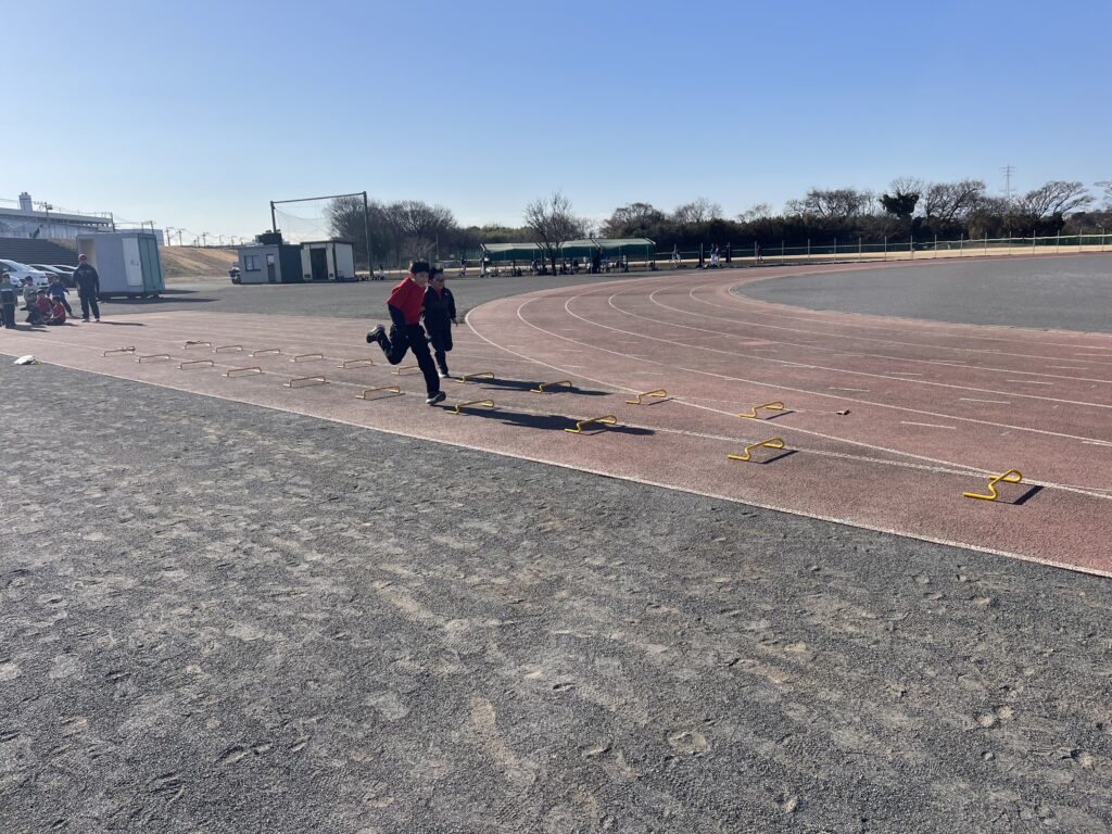 スプリントはシザースやショートスプリント、跳躍は木曜に引き続きハードル走等に取り組みました。