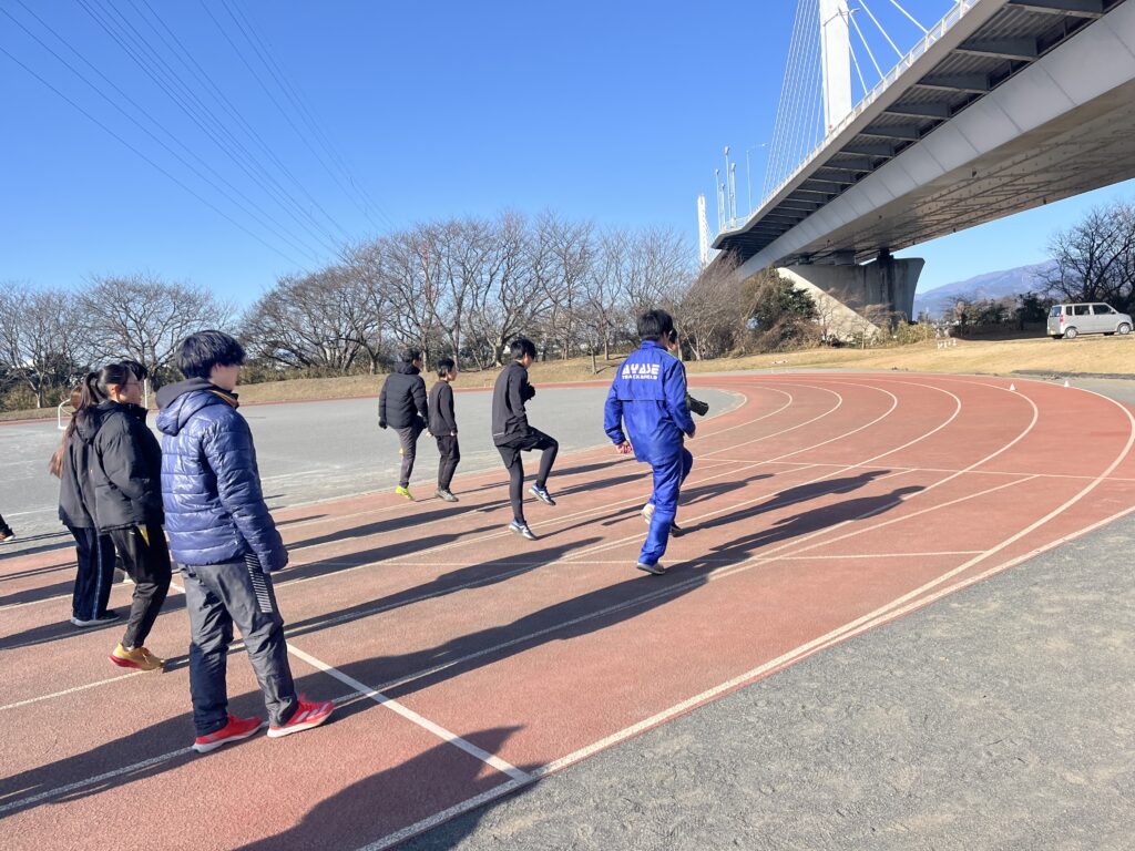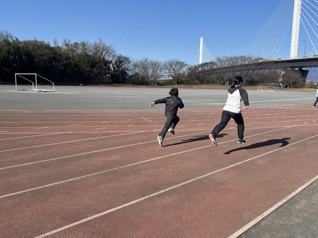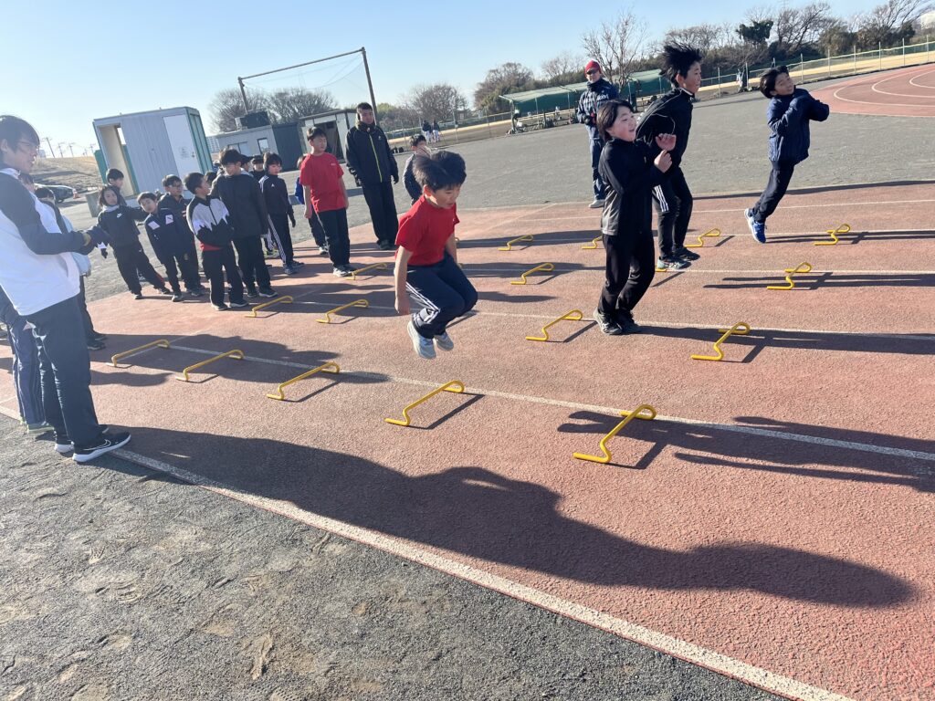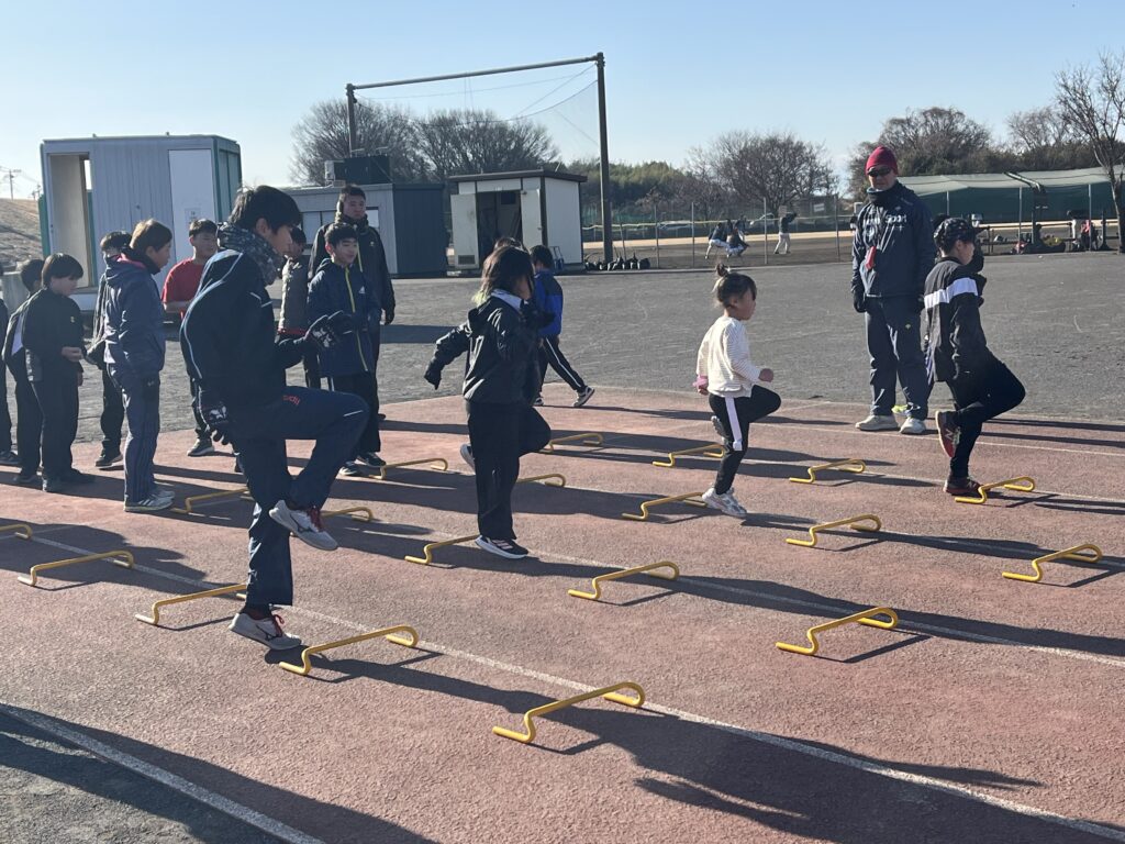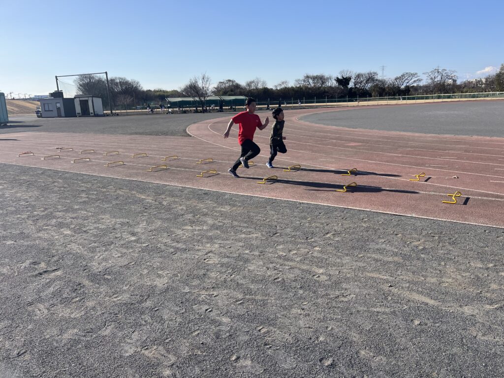 スプリントはシザースやショートスプリント、跳躍は木曜に引き続きハードル走等に取り組みました。