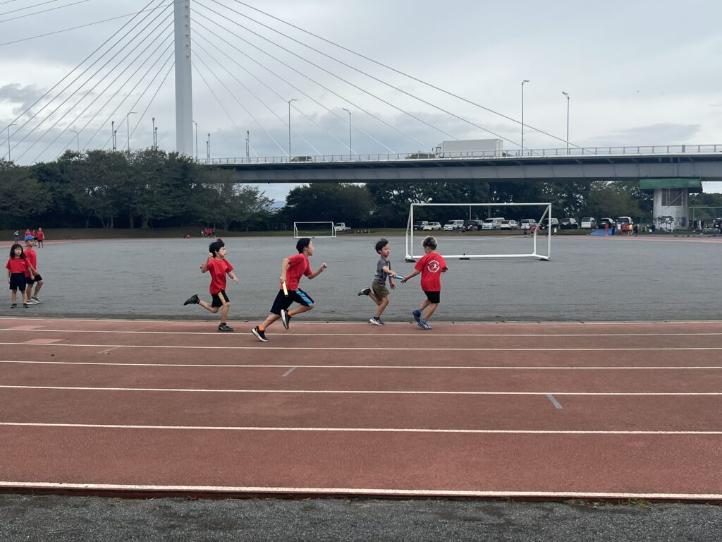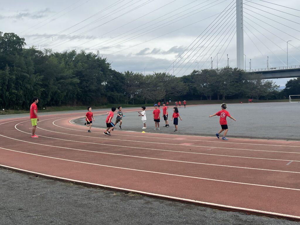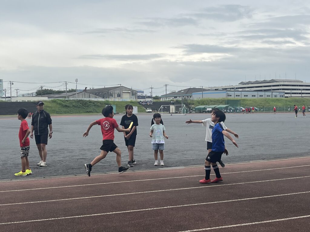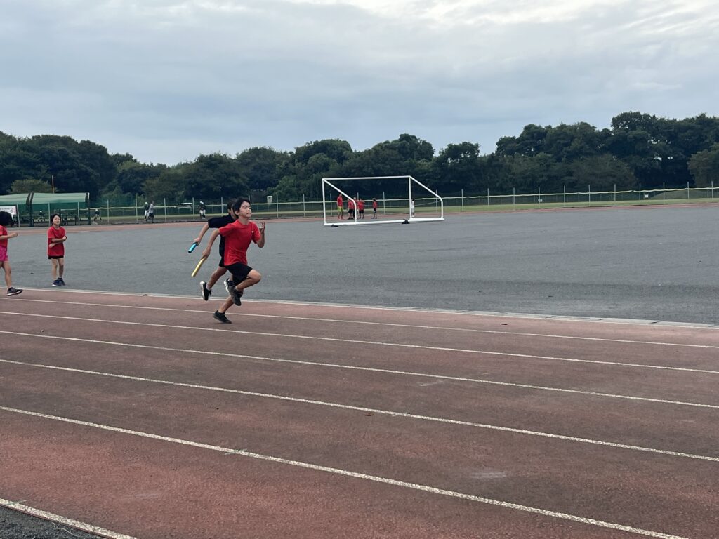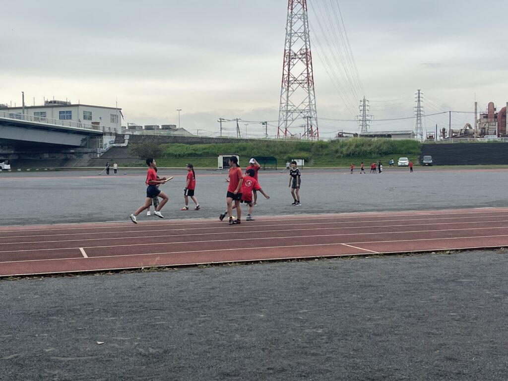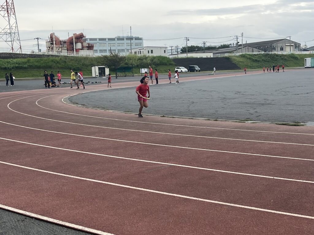 今日はメニューが早めに終わってしまったからか、小学生のリレーにまざって300mエンドレスリレーをしました。