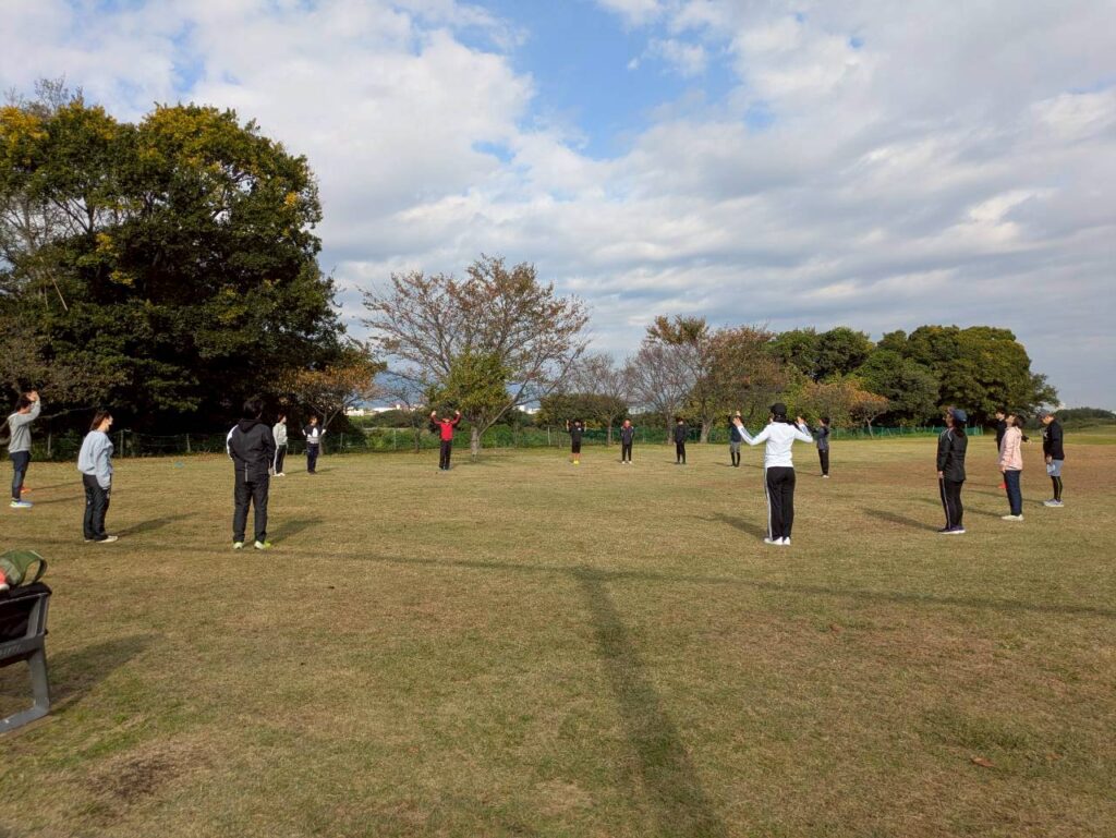 今週の寒川教室は気温14.5度前後と肌寒い気候の中、多目的広場での開催となりました。