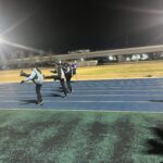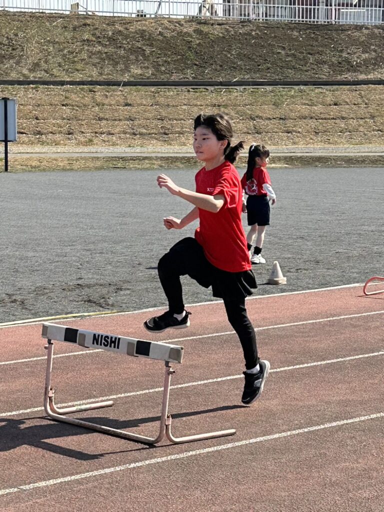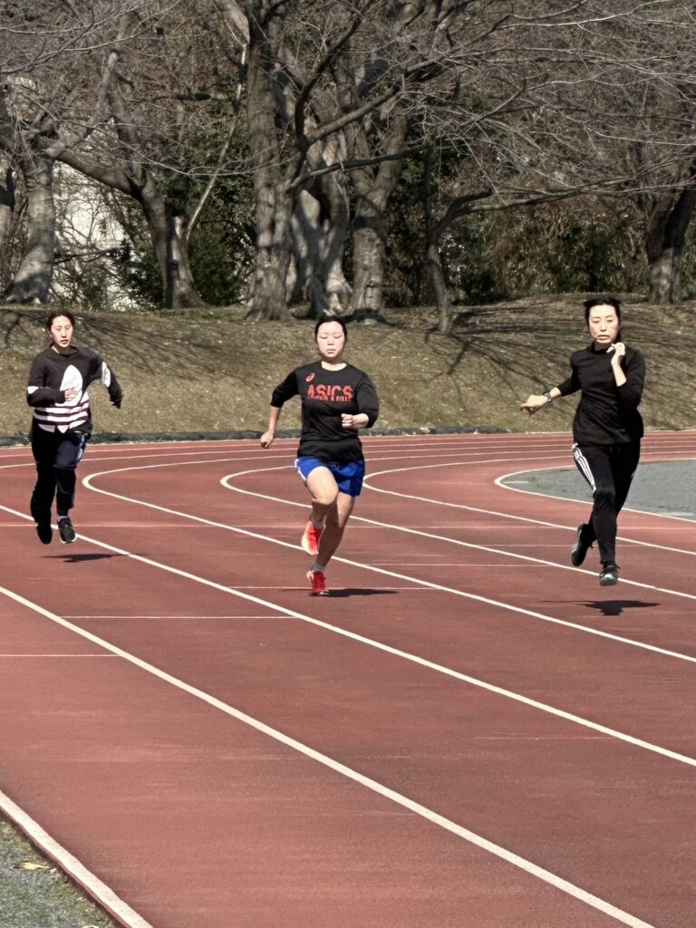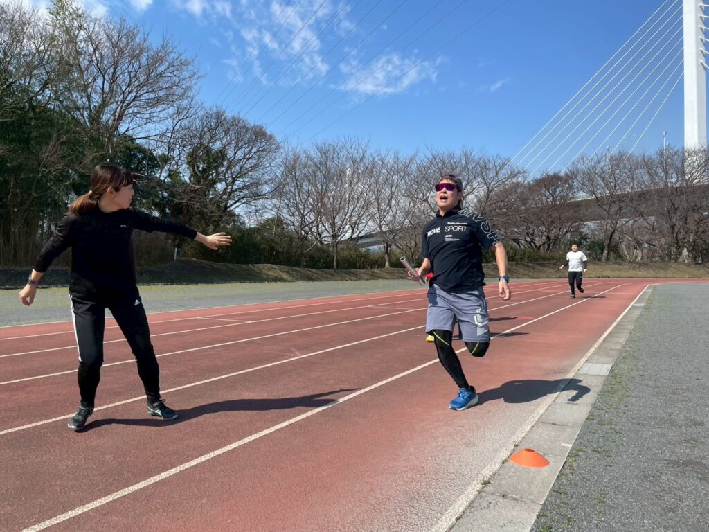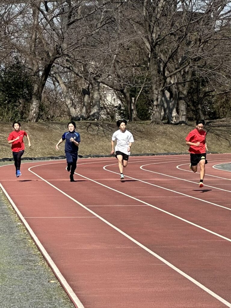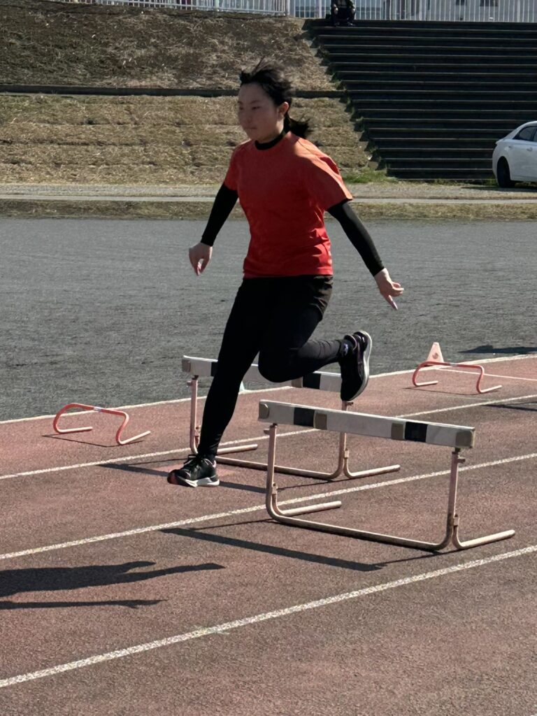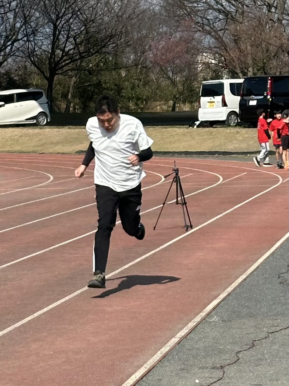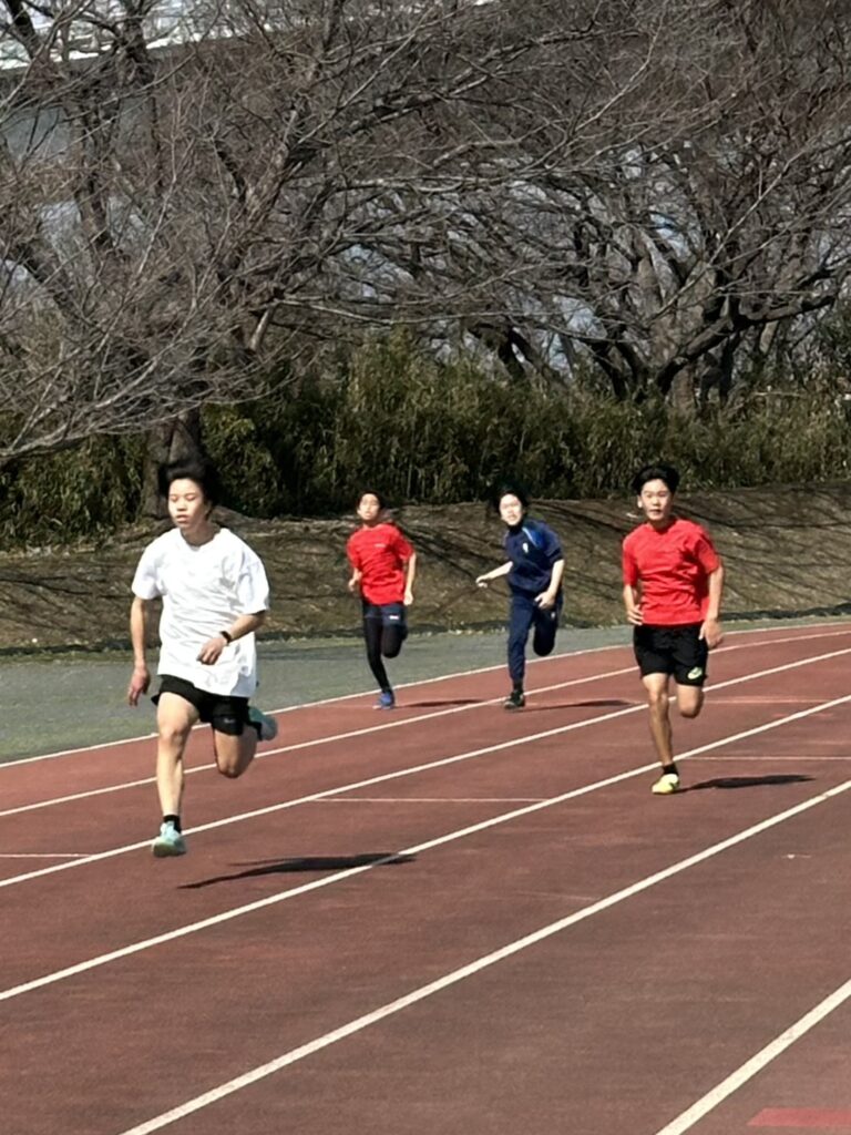 ハーフニーのスタート練習は3歩目までの上体と脛の角度に注意して取り組みます。