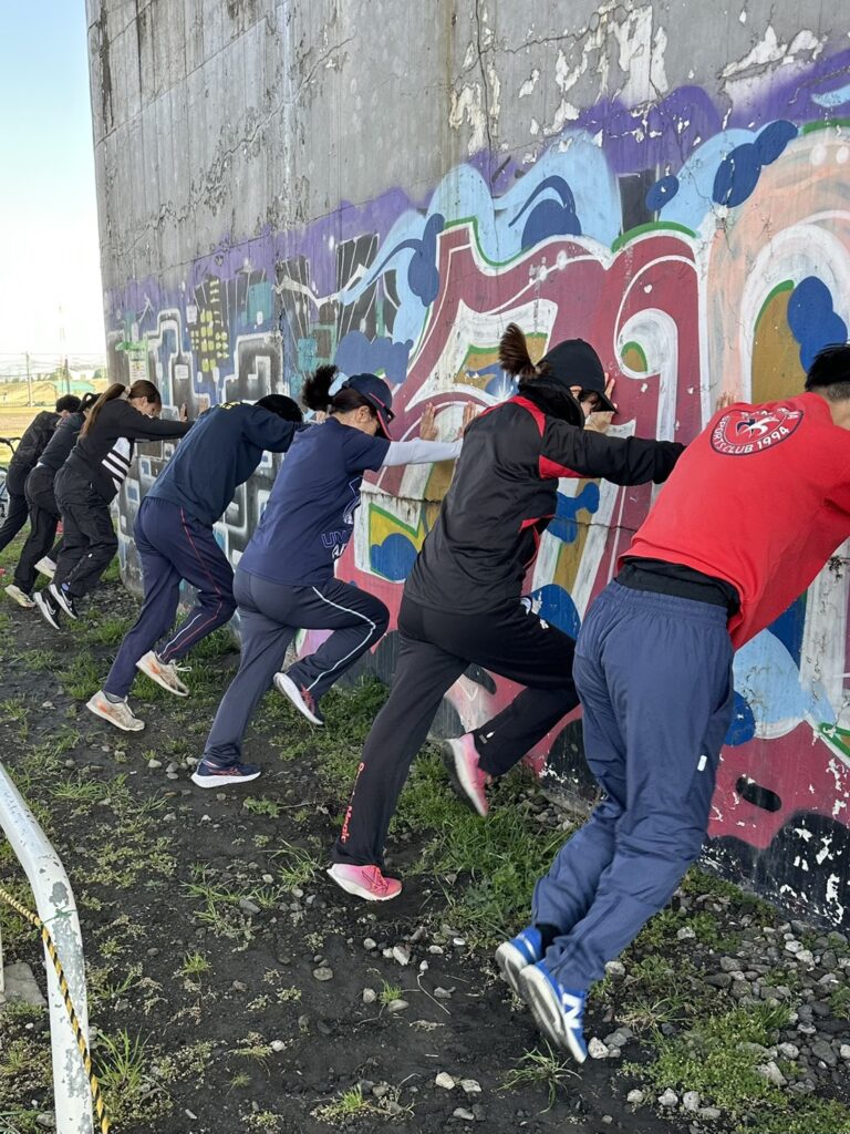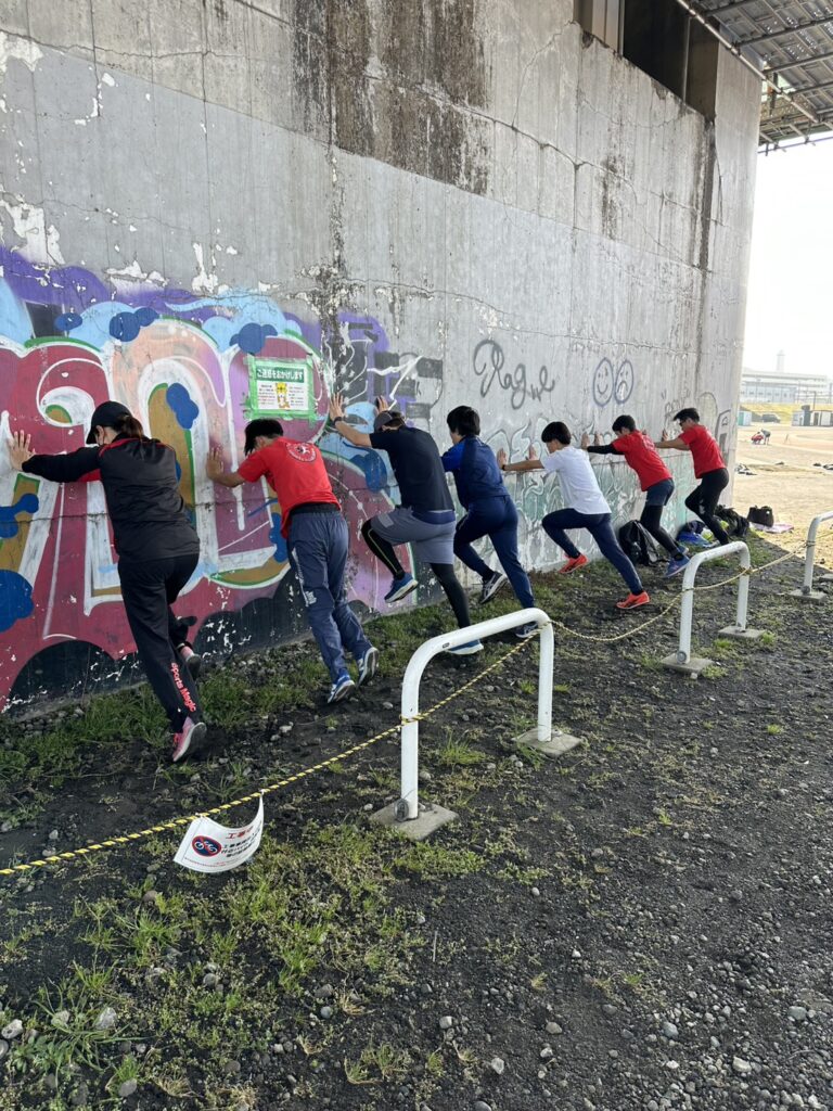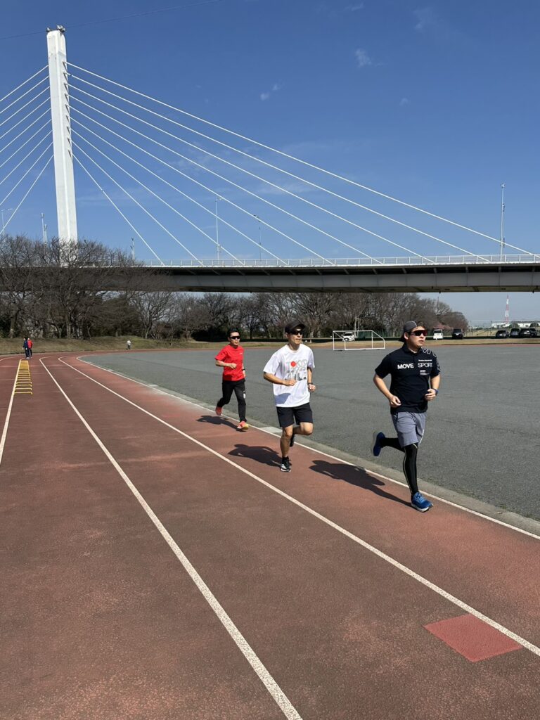 壁を使ったシザースドリルまではロング、ジョギングも一緒に動きました。