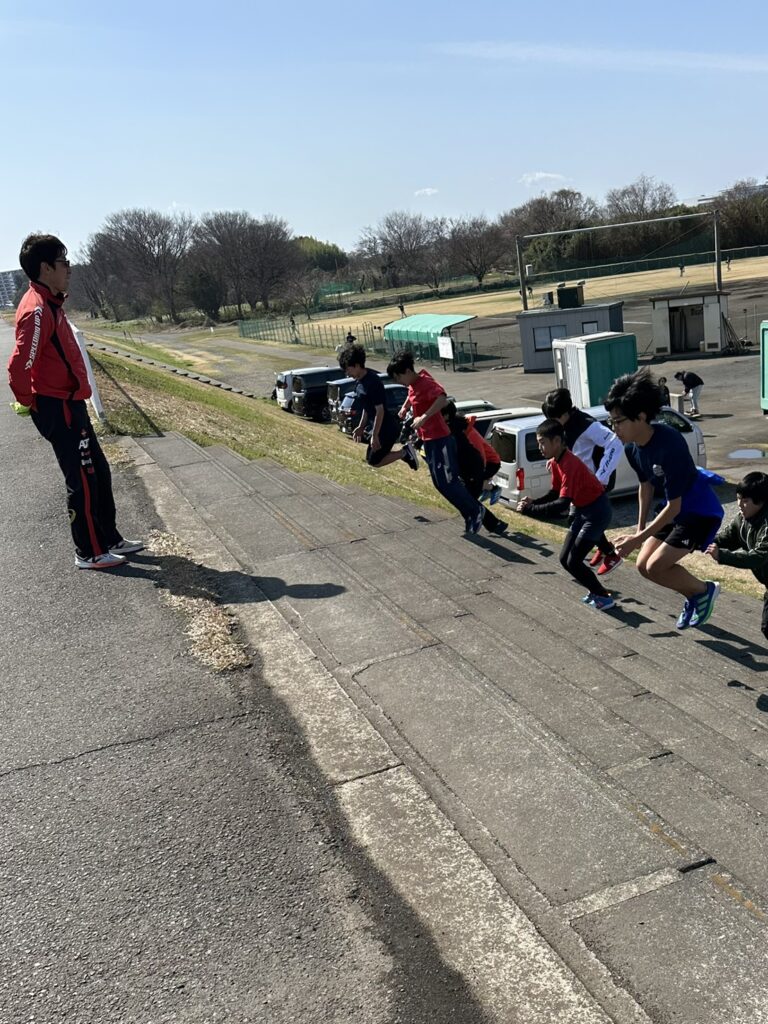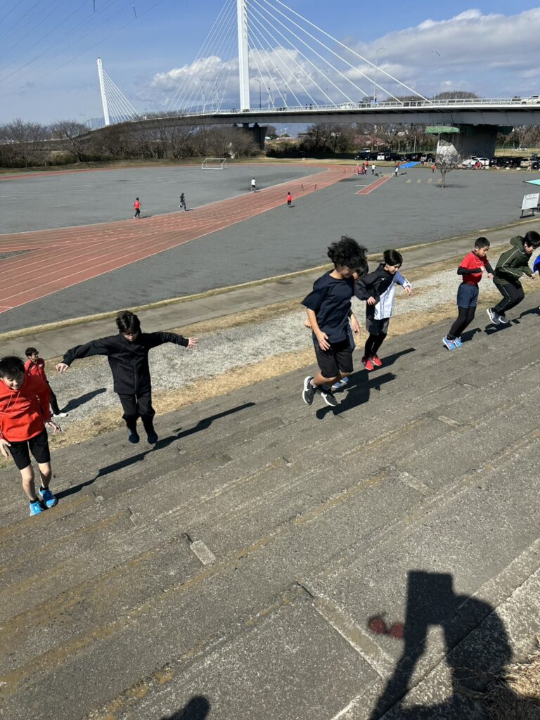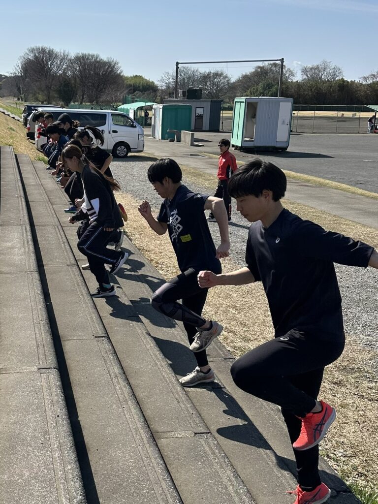 瞬発力を高める階段トレも行いました。